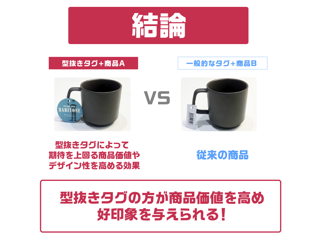 どちらの場合も型抜き(円形タグ)の方が商品価値を高める効果がありました